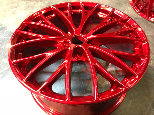 Wenn es richtig leuchten oder glänzen soll, stößt der Glanzgrad einer herkömmlichen Lackierung an seine Grenzen. Candy Pulverbeschichten erzielt unter diesem Aspekt ein sehr viel besseres Ergebnis. Hochglanzverdichten der Felge und anschießendes Lasurpulvern in fast allen möglichen Glanzfarben.