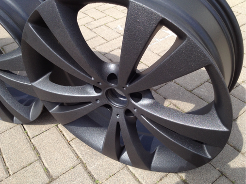 Beim Pulverbeschichten von Felgen wird Farbpulver elektrostatisch aufgeladen und mit einer Pulverpistole auf die Felge aufgebracht. Voraussetzung ist, dass der zu beschichtende Werkstoff elektrisch leitfähig ist, wie Stahl, Aluminium etc. Im Einbrennofen wird die Farbbeschichtung anschließend bei einer Temperatur zwischen 140° und 200° C eingebrannt.